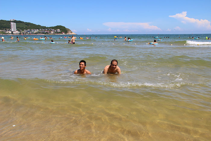 豐盛的午餐過后,便進入了本次旅途的主題——陽光與海灘。閘波那明媚的天空、湛藍的海水、迷人的海灘與豐富的海上游樂活動讓我們玩得流連忘返。在這里,我們公司有的員工一家大小在海上游泳,有點成群結隊在水上樂園玩起了跳水,還有個別同事玩起了水上摩托,其他的同事進行集體合影留念。整一個旅途當中,公司的領導也參與其中,與同事玩成一片,歡呼聲和歡笑聲一波接著一波,從無斷絕。